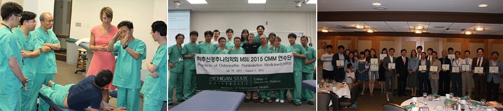 미시건주립대학교 오스테오패시의학대학 초청으로 미시건주립대 오스테오패시의학 전문의(DO)들에게 한국 추나요법을 소개하고 직접 추나요법을 실습하는 교육을 진행함.